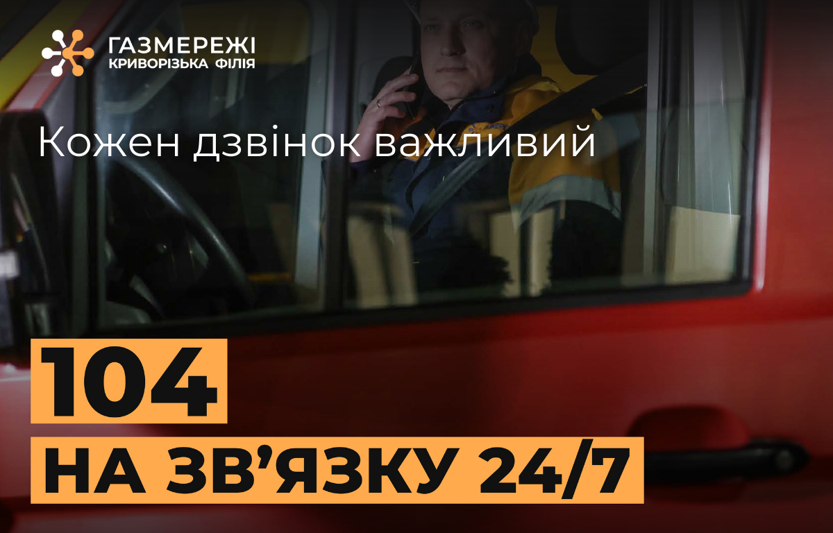Виклик служби “104” для клієнтів Криворізької філії є безкоштовним. Усі витрати на роботу диспетчерів та виїзди бригад покриваються за рахунок тарифу на розподіл газу.