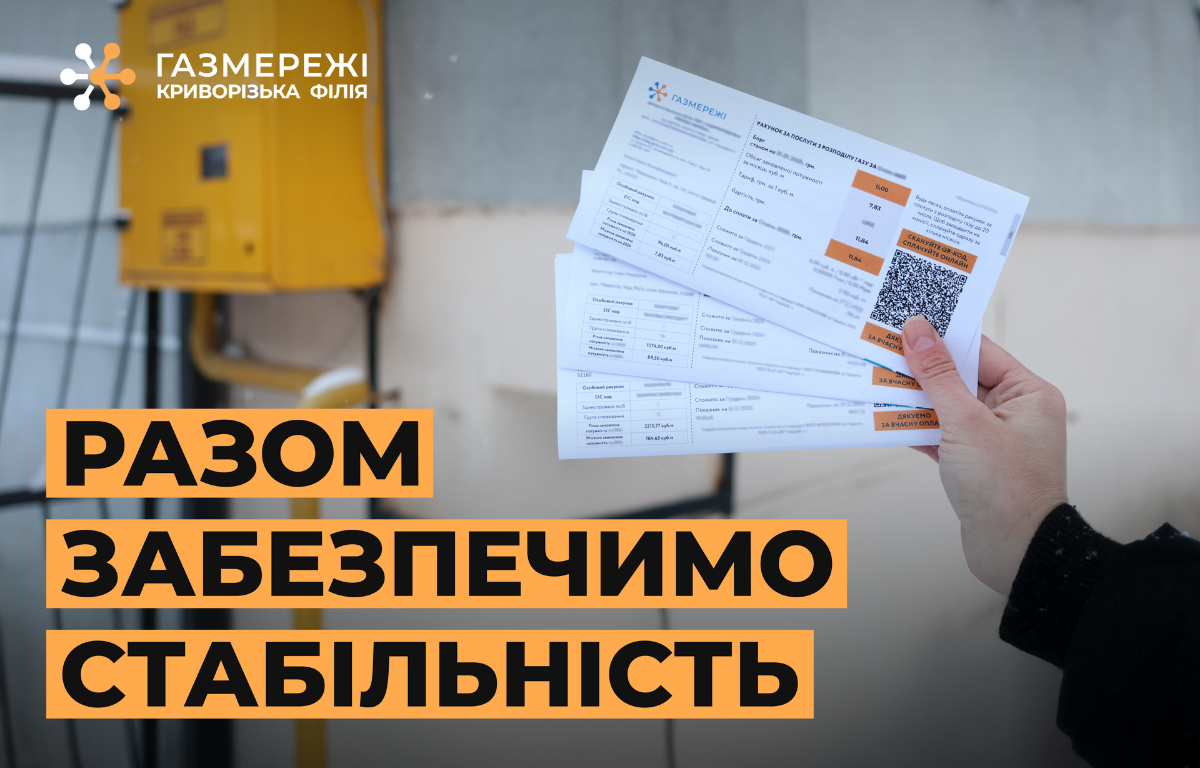Сплачуйте за розподіл газу до 20 числа кожного місяця. Дякуємо тим, хто тримає систему разом із нами.